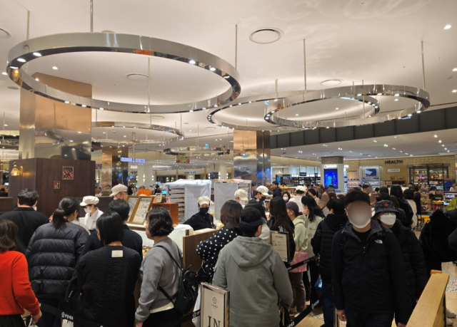 부산 신세계백화점 센텀시티점에 오픈한 부창제과 매장 앞에 대기줄이 길게 늘어서있다. 사진 제공=FG