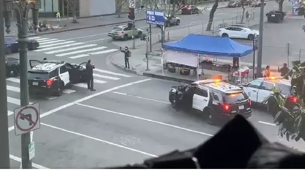 로스앤젤레스 다운타운에서 긴박한 경찰 작전이 펼쳐졌다. 7번가와 그랜드 애비뉴 교차로에서 총기 소지 의심자와 경찰 간 긴장감 넘치는 대치 상황이 발생했다.