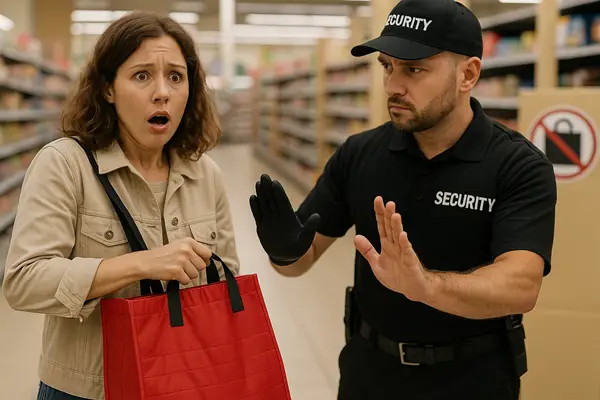 리버사이드 카운티의 한 그로서리 아웃렛 매장이 최근 늘어나는 도난 문제로 고객들에게 재사용 쇼핑백이나 개인 가방을 계산대에 맡기게 했습니다.