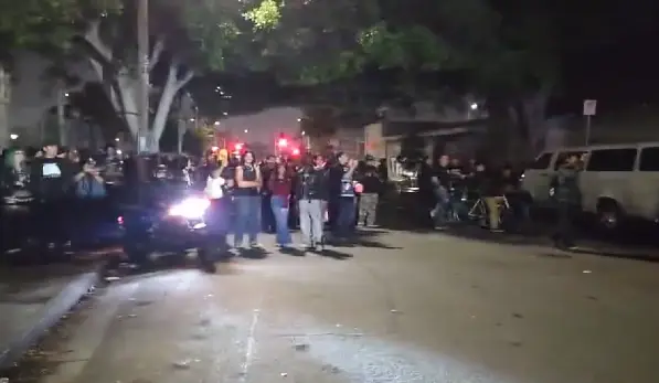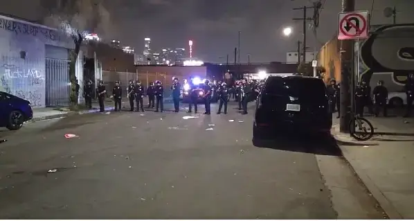 로스앤젤레스 다운타운 E 16번가와 트리니티 스트리트(E 16th St & Trinity St) 일대에서 24일 밤, 한 남성이 총을 휘두른다는 911 신고가 접수된 후 대규모 불법 집회가 발생해 경찰이 긴급 출동했습니다.