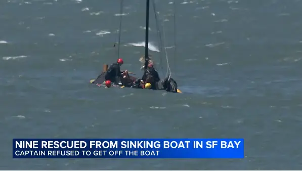 샌프란시스코 베이에서 9명이 탑승한 요트가 침몰 위기에 처했다가 모두 무사히 구조되는 사고가 발생했습니다.