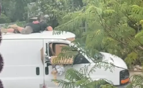 여성이 흰색 밴 위에서 경찰과 대치하다 총격 발생