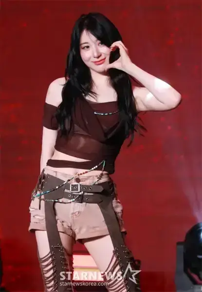 가수 이채연이 3일 오후 서울 강남구 일지아트홀에서 진행된 미니 3집 앨범 ‘쇼다운’(SHOWDOWN) 발매기념 쇼케이스에서 포즈를 취하고 있다. /2024.07.03 /