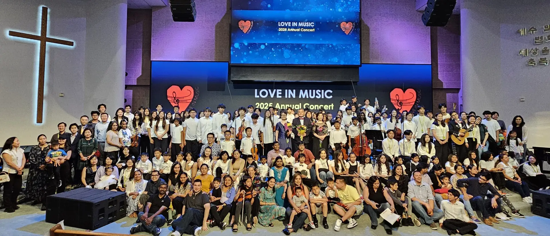 이날 연주회에는 흑인과 히스패닉, 몽골, 인도, 중국, 베트남, 엘살바도르등 타 커뮤니티 음악 꿈나무와 가족, 지역 봉사처 관계자, 일반 관객등 3백여명이 참석한 가운데 바이올리니스트 김강원 박사가 이번 연주회에서 러브인 뮤직 앙상불을 지휘했습니다