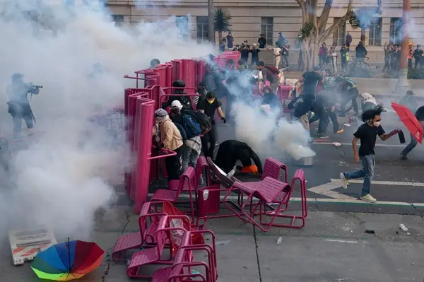 곳곳에서는 ‘펑’ 하는 폭음과 함께 연기가 치솟았고, 일부 시위대는 도로 위에 바리케이드를 쌓아 경찰 진입을 막으려 했다.