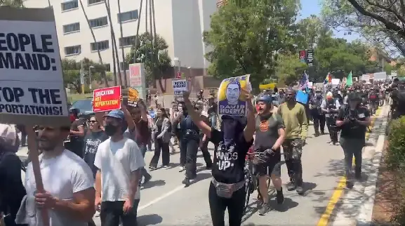 로스앤젤레스(LA) 도심에서 이민세관단속국(ICE) 단속에 반대하는 대규모 시위가 다시 격화되고 있다. 6월 9일(현지시각) 정오를 전후해 시청 앞(254 N Main St)에 모인 수백 명의 시위대는 구호를 외치며 도로를 행진했고, 일부는 도심 주요 도로를 점거하며 교통을 마비시키면 행진을 시작했습니다. 오전에는 평화롭게 시작한 시위가 밤이되면 폭력적인 시위