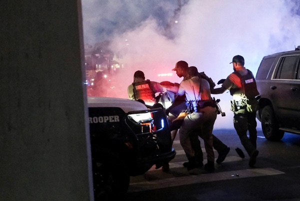 일부 시위대는 101번 프리웨이 위에서 경찰에 돌과 폭죽을 던졌고, 이에 경찰은 섬광탄과 최루탄으로 대응했습니다.