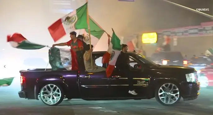 19일 밤 LA 파코이마에서 픽업트럭과 승용차 운전자들이 교차로를 점거해 경찰이 출동했습니다.