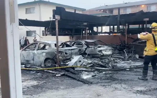 남가주 호손(Hawthorne) 북부 유칼립투스 애비뉴(12545 Eucalyptus Ave) 소재 아파트 주차장에서 6월 27일 새벽 4시경 차량 3대가 동시에 불에 타는 화재가 발생했습니다.