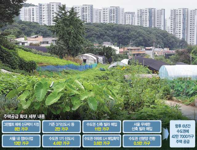 정부가 서울 강남 지역 등 수도권 그린벨트(개발제한구역)를 풀어 8만 가구 규모의 주택을 신규 공급한다. 재건축·재개발 촉진 특례법을 제정해 이미 추진되고 있는 정비사업을 앞당겨 21만 7000가구를
