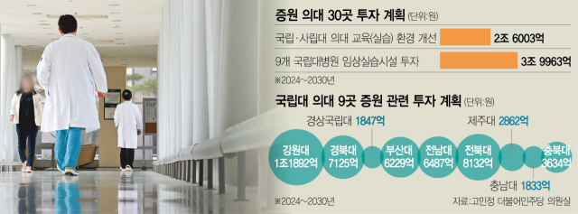 의대 정원이 늘어난 대학들이 앞으로 7년 동안 교육 여건 개선에 6조 5000억 원이 넘는 자금이 소요될 것으로 자체 추정했다. 교육부는 각 대학이 제출한 투자 계획을