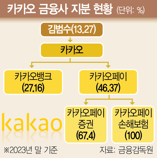 카카오 창업주인 김범수 CA협의체 공동의장 겸 경영쇄신위원장이 자본시장법 위반 혐의로 구속되면서 카카오의 금융사 지배구조가 통째로 흔들릴 위기에 처했다. 벌금형 이상이 확정될 경우 인터넷은행 1위인 카카오뱅크,