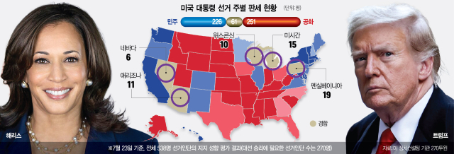 트럼프 펜실베이니아 잡으면 승산…해리스는 ‘선벨트’서도 이겨야