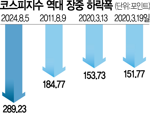 국내 증시가 역사상 최대 폭으로 하락했다. 미국발(發) 경기 침체 공포 확산에 엔캐리 트레이드 자금 청산 우려와 인공지능(AI) 거품론, 이란의 이스라엘 보복 공격 초읽기 등 4대