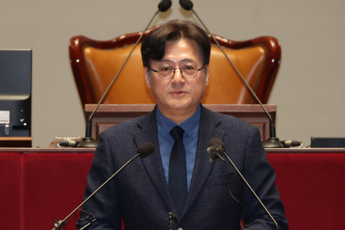 홍익표 더불어민주당 원내대표가 2일 국회 본회의에서 ’10·29 이태원참사 피해자 권리보장과 진상규명 및 재발 방지를 위한 특별법안'(이태원 특별법)과 ‘순직 해병 수사 방해 및 사건 은폐 등의