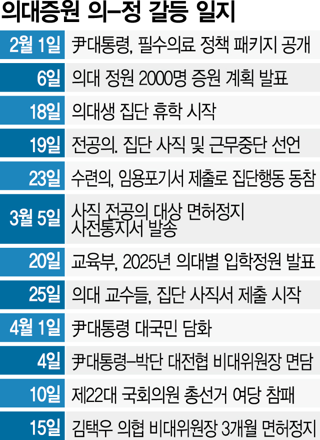 의대 정원 증원을 둘러싸고 의정 갈등이 두 달째 이어지고 있는 가운데 국립대 총장들이 내년도 의대 신입생을 뽑을 때 증원 규모를 탄력적으로 조정해달라고 요청했다. 이달 말까지