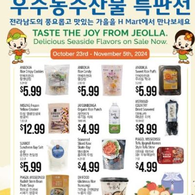 H 마트가 전라남도 농수산 식품의 우수성을 알리기 위해 ‘전라남도 우수농수산식품 특판전’을 개최합니다. 행사 기간 동안 전라남도 가을의 맛을 즐길 수 있는 안복자 한과 쌀 엿강정,