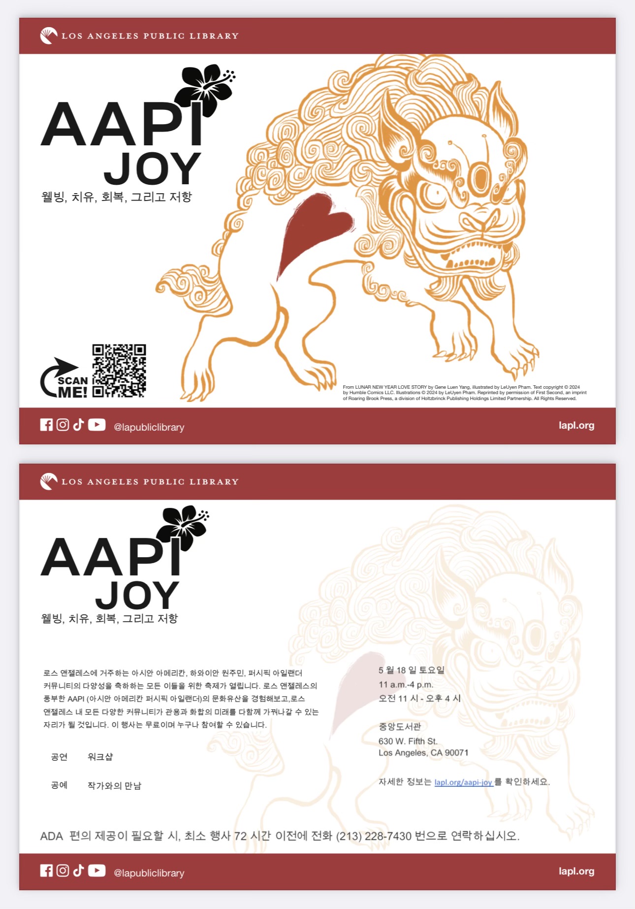 5월 아시아태평양계 문화 유산의 달을 맞아 LA 지역의 아시안 커뮤니티 역사와 문화를 기념하는 축제가 LA 다운타운의 LA 시영 중앙도서관에서 열린다. LA시 공공도서관(LAPL)은 오는 18일(토) 오전