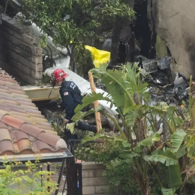 시미 밸리 주택가 한복판으로 소형 비행기 추락 , 2 명 숨져