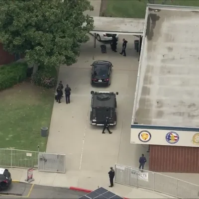 볼드윈 팍 올리브 중학교에서 여직원 교무실에서 바리케이드치고 경찰과 대치 스왓팀과 장갑차 , 구급차 출동, 1일 볼드윈 팍에 위치한 올리브 중학교에서 한 여성 교직원이 교무실에서 바리케이트를
