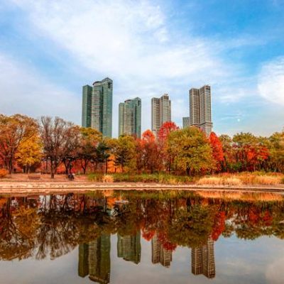 마천루 속 휴식 공간, 여의도공원 여의도공원은 마천루 속 시민 휴식처다. 노랗게 물든 은행나무길과 새빨간 단풍, 복자기나무 등이 다양한 가을 색감을 뽐낸다. 최소한의 시스템으로 관리되는 자연생태숲,