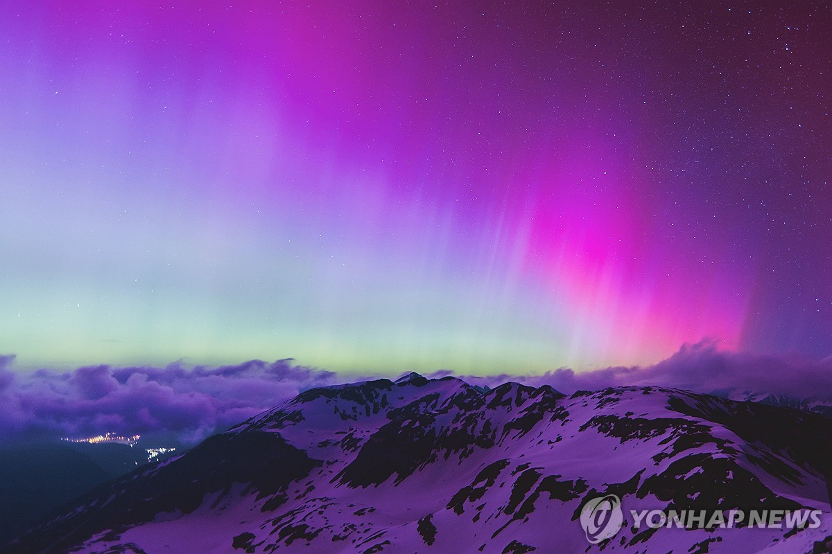 2024년 5월 11일 지자기 폭풍이 발생하는 Zell am See 근처 Fusch an der Großglocknerstraße의 밤하늘을 비추는 오로라의 신비한 모습 0 0