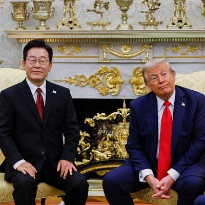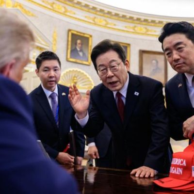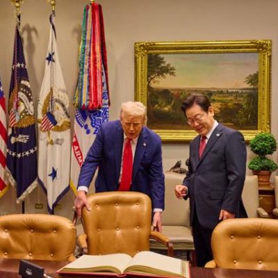 [한미정상회담] ■ 화기애애했던 140분 李 덕담에 경직된 분위기 대반전 골프채·거북선 등 선물 보따리에 트럼프 “원하는 것 골라라” 화답 ‘언제나 당신과 함께’ 자필 메모도 대통령실이 25일(현지