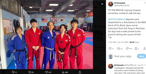 휴스턴 태권도 관장 가족 5명, 여성 비명 듣고 현장 달려가 텍사스주에서 태권도장을 운영하는 한인 가족이 성폭행당할 뻔한 10대 소녀를 구해 화제가 되고 있다. 텍사스 휴스턴