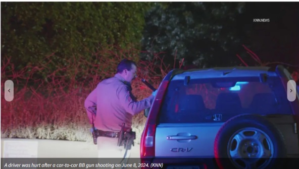 토요일 오후 11시경, 포모나 10번 프리웨에서 BB총 총격 사건 토요일 늦은 밤 10번 고속도로에서 차량 간 BB 총격 사건이 발생해 운전자 한 명이 부상을 입었습니다.