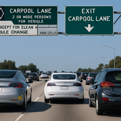 캘리포니아 전기차 운전자들이 오랫동안 누려왔던 카풀 차선 단독 주행 혜택이 오는 10월 1일부로 사라집니다. 가주 차량국, DMV에 따르면 연방 정부가 이른바 ‘친환경 스티커(Clean Air Vehicle Decal)’ 프로그램의 연장을