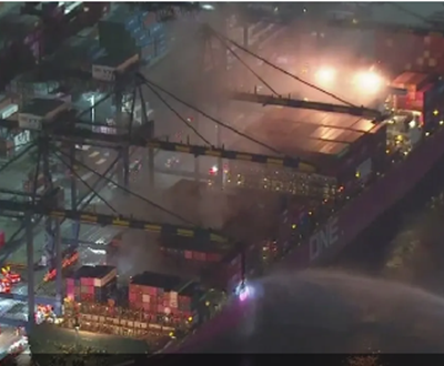 로스앤젤레스 항만 컨테이너선 화재, 산페드로 일대 ‘실내 대피’ 권고 로스앤젤레스 항만에 정박 중이던 컨테이너선 ‘원 헨리 허드슨(One Henry Hudson)’호에서 21일 금요일 저녁 큰 불이 나