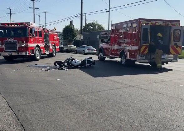엘에이 다운타운 교차로에서 인명피해 있는 오토바이 추돌사고 발생