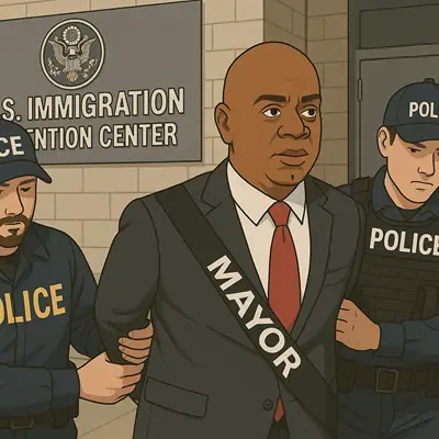 구금시설 불법 주장하며 시위하던 바라카 시장, 무단침입 혐의로 수갑 찬 채 연행돼 2025년 5월 9일, 뉴저지주 뉴어크의 라스 바라카(Ras Baraka) 시장이 이민세관단속국(ICE) 구금시설 앞에서 시위를