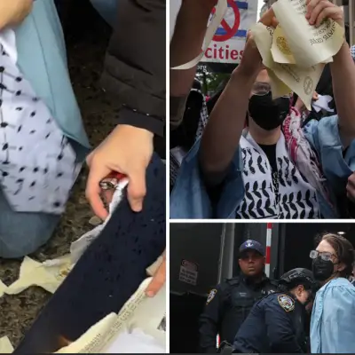 컬럼비아 졸업식에서 친팔 시위로 두명 체포..졸업생들 졸업장 불태우고 찢고