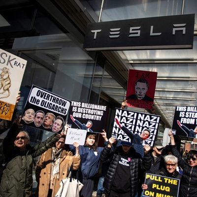 2025년 3월 2일 뉴욕시의 한 테슬라 매장 앞에서 일론 머스크에 반대하는 대규모 시위가 벌어져 9명이 체포되는 사건이 발생했다. 지난 3월 1일 토요일, 맨해튼 미트패킹 지구에