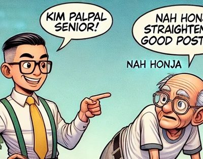 김팔팔 시니어: “나이를 먹어도 젊어 보이는 비결이 뭔지 아나?” 나혼자 씨: “비싼 화장품? 필러? 아니면… 마법?” 김팔팔 시니어: “아니, 바로 자세다, 자세! 허리 쫙~ 펴고,