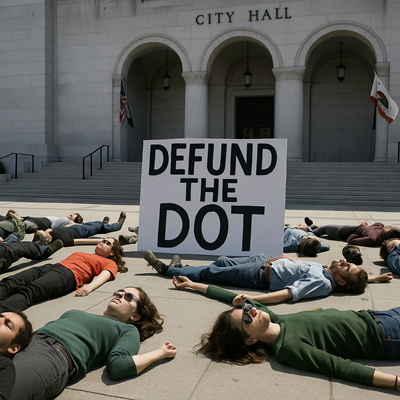 교통국 예산 에 항의하며 바닥에 드러누운 시위대.. 시민단체 ‘Streets Are For Everyone’의 데미안 케빗은 “예산을 줄이더라도 생명을 지키는 안전 프로그램은 반드시 보존돼야 한다”고 강조 하지만