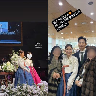 배우 신애라 차인표 부부 첫째 아들의 결혼식 모습이 공개됐다. 배우 지소연은 29일(한국시간) 자신의 인스타그램에 “예쁜 애라 언니”라는 글과 함께 한 장의 사진을 공개했다. 공개된 사진