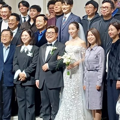 코미디언 윤정수(53)의 결혼식이 동료 연예인들의 열렬한 축하 속에 성대하게 치러졌다. 30일(한국시간) 스타뉴스가 포착한 하객 단체 사진에는 윤정수의 결혼을 축하하기 위해 자리를 빛내준 동료 연예인들의 모습이