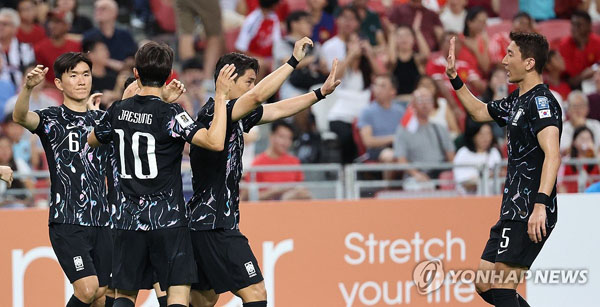 한국, 싱가포르 7-0 꺾고 WC 3차예선 진출…