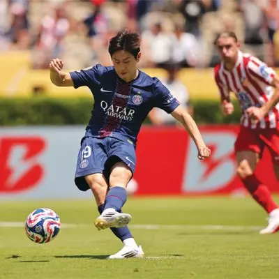 PSG, AT 마드리드 상대로 4-0 완승페널티킥 키커 비티냐, 이강인에 양보 “이강인같이 골 필요한 선수에 기회 줘” 2025 미국 클럽 월드컵에 출전한 파리 생제르맹(PSG·프랑스)의 이강인이 동료가
