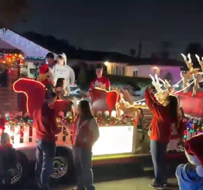 토렌스 경찰이 어제 오후 5시 41분, 순찰차로 산타가 탄 썰매 플로트를 호위하며 노스웨스트 토런스 주택가를 돌며 시민들을 찾았습니다. 산타는 17217 Amie 애비뉴 인근에서 플로트를 멈추고