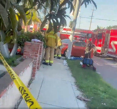 엘에이 남쪽의 한 조용한 주택가 교차로가 순식간에 폐차장으로 변했습니다. 오늘 아침 W 109th Pl와 S Hoover St 인근에서 승용차 한 대가 심하게 파손된 채 도로