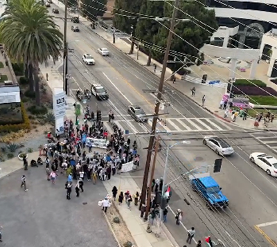 FOX 11 LA 건물 앞, 친팔레스타인 시위…소텔 교차로서 집회
