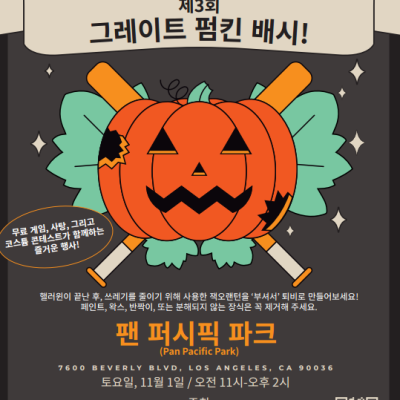 LA시가 오는 11월 1일, 팬 퍼시픽 공원에서 제3회 ‘그레이트 펌킨 배시’를 엽니다. 이 행사는 할로윈이 끝난 다음 날, 남은 호박을 깨며 즐기는 가족 친화형 친환경