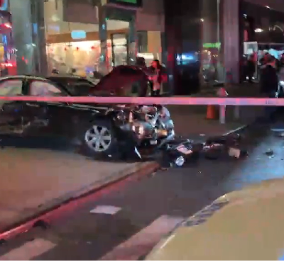 어제 저녁 8시 15분경 맨해튼 차이나타운의 캐널 스트리트와 바워리 교차로에서 차량 충돌 사고가 발생했습니다. 현장 목격자의 영상에 따르면, 사고에 연루된 차량 중 한 대가 TD