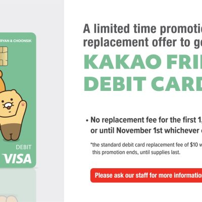 한미은행이 인기 캐릭터 ‘라이언과 춘식이’가 등장하는 새 카카오 프렌즈 데빗카드를 출시했습니다.개인 체킹 계좌 고객들에게 제공될 이 카드는 큰 인기를 얻고 있는 ‘라이언과 춘식이’ 캐릭터를 청량감