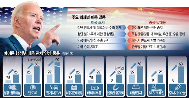 조 바이든 미국 행정부가 중국산 레거시(범용) 반도체에 대한 관세를 기존의 25%에서 50%로 올리고 전기차를 비롯한 청정에너지 산업 공급망 전반에서 대중(對中) 무역장벽을 더욱 높이 쌓는다. 중국의