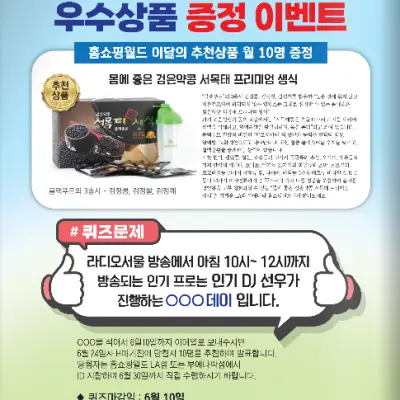홈쇼핑월드 협찬으로 이달의 추천상품 선정해서 10명 당첨자에게 증정 하는 이벤트 인기몰이중 라디오서울이 제작,발행하는 H매거진 연중 기획 이벤트 한국일보 미디어그룹 라디오서울 방송이 인기리에 제작,발행하는 종합 매거진인