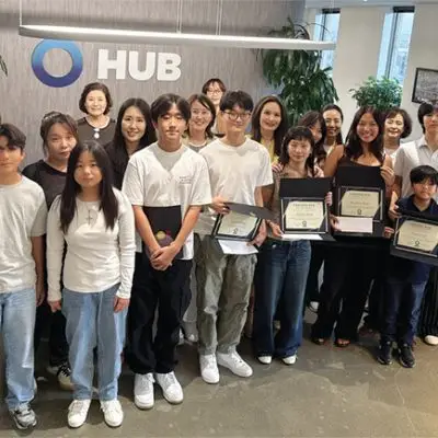 HUB CITY 보험 장학금 12명의 중,고교생들에게 지급 허브시티 보험(대표 브라이언 정)이 지난 25일 LA 한인타운 본사에서 2025년 직원 자녀 장학금 수여식을 가졌다. 이날 중·고교생은 각각